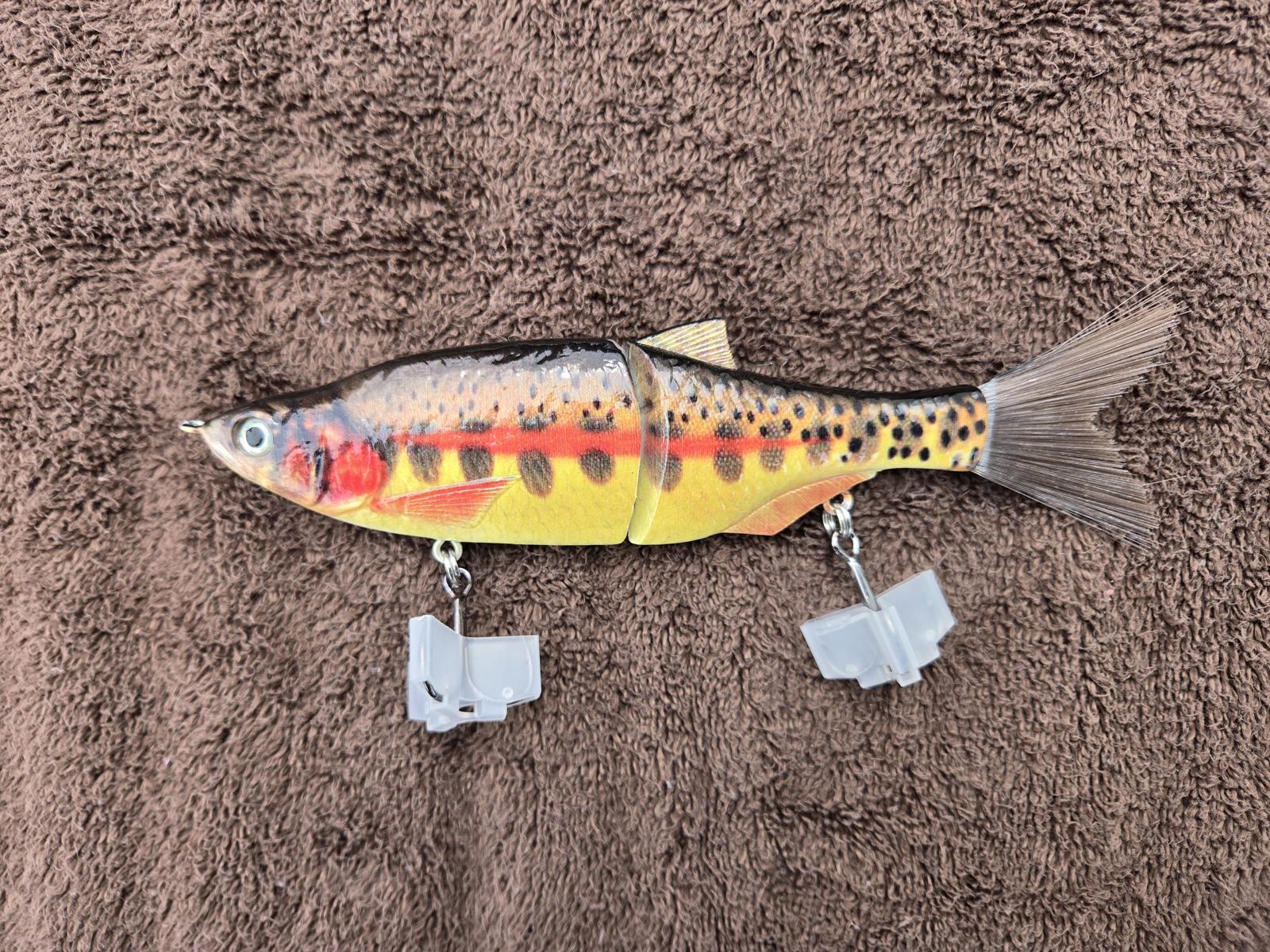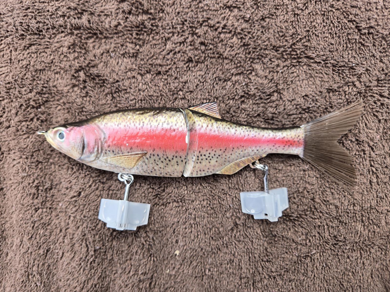 7" Glide baits. Custom colors, made for big Largemouth, big Spots, and giant Stripers. Extra-heavy hooks, high-detail paints!